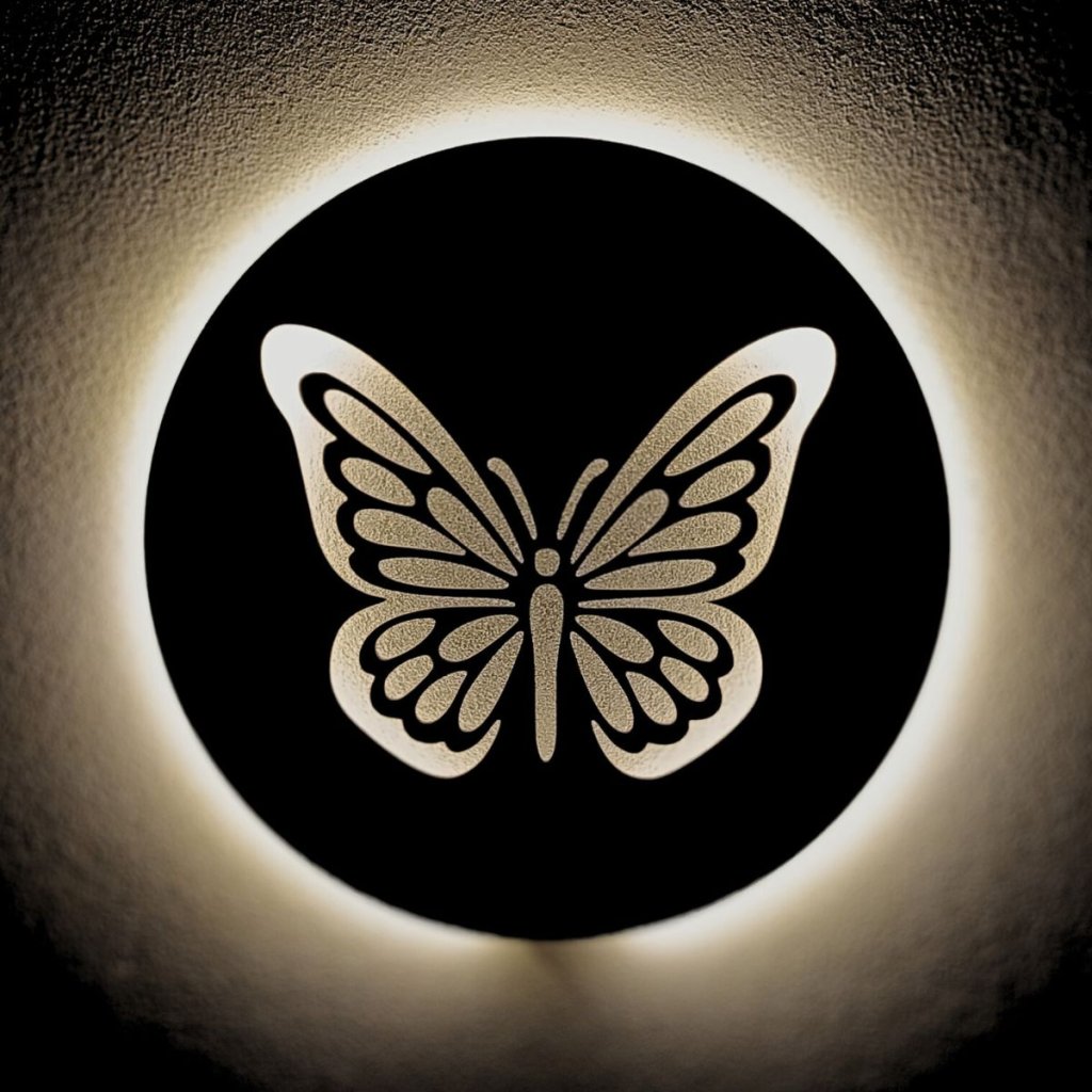 Dřevěná lampička s motýlem nejen do dětského pokoje. Dekorační světýlko s LED podsvícením na dálkové ovládání.