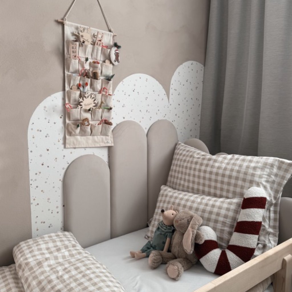 - látkový adventní kalendář (38 x 38 cm) s kapsami (6x7 cm), dřevěnou tyč, provázek, korálek